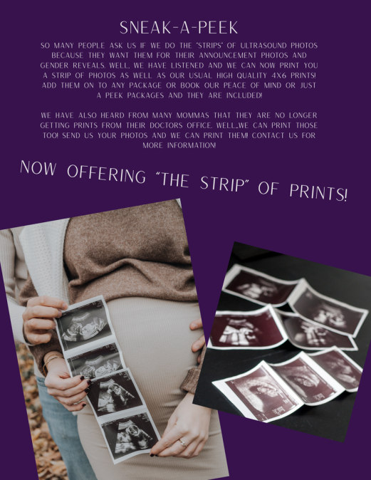 Everyone wants that adorable strip of prints for their announcement and reveal photos! We can print them for you!!!!